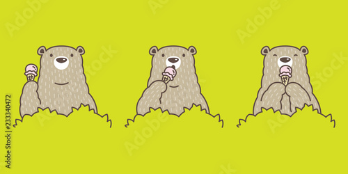 Watch out for our updates!! Little cute polar bear eating ice cream logo vector. The logo head polar bear with ice cream. Bold logo with a strong message. Set of cute ice cream polar mascot logo with optional appearance.